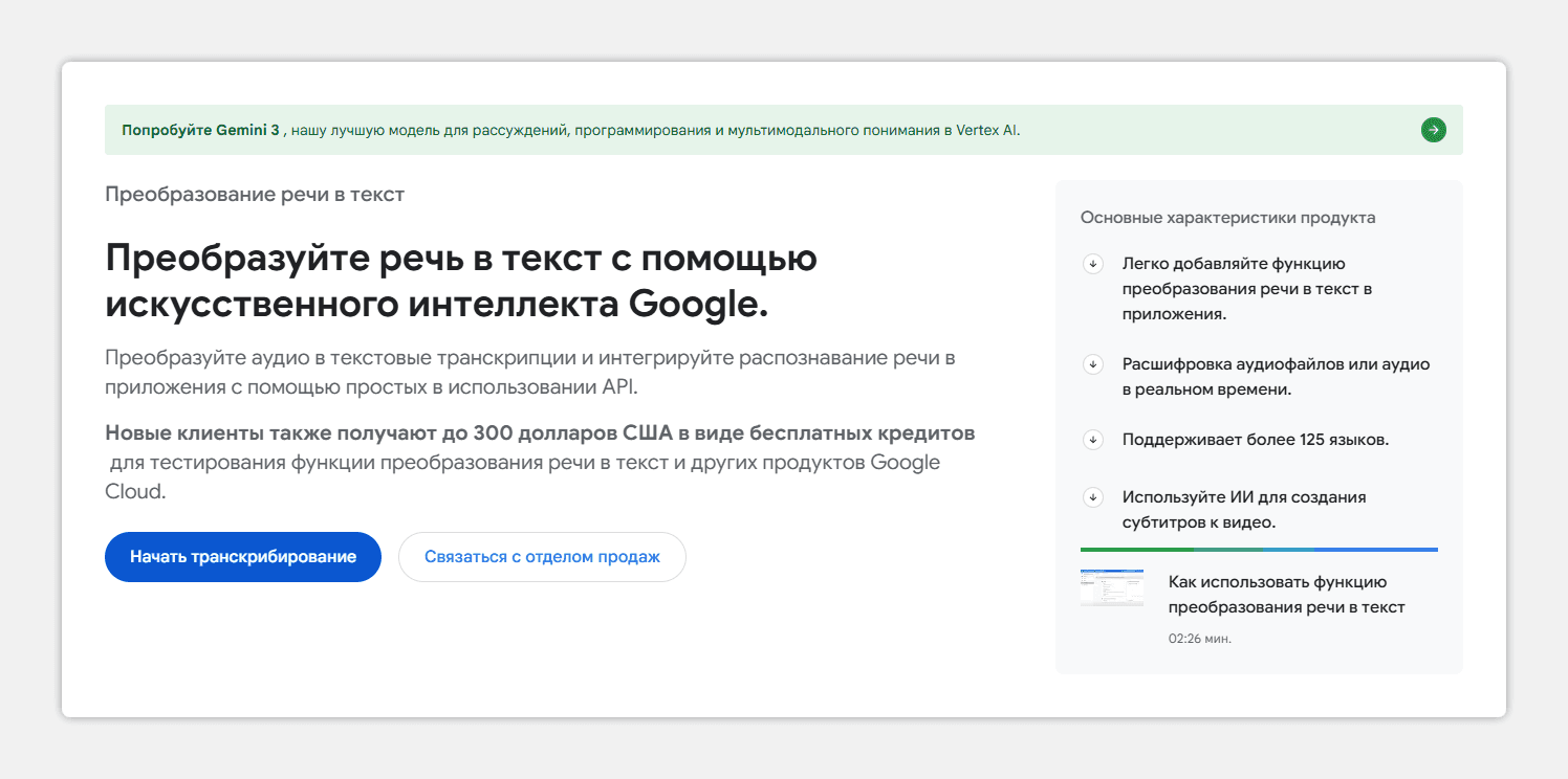 3. Google Speech-to-Text — масштабируемая нейросеть