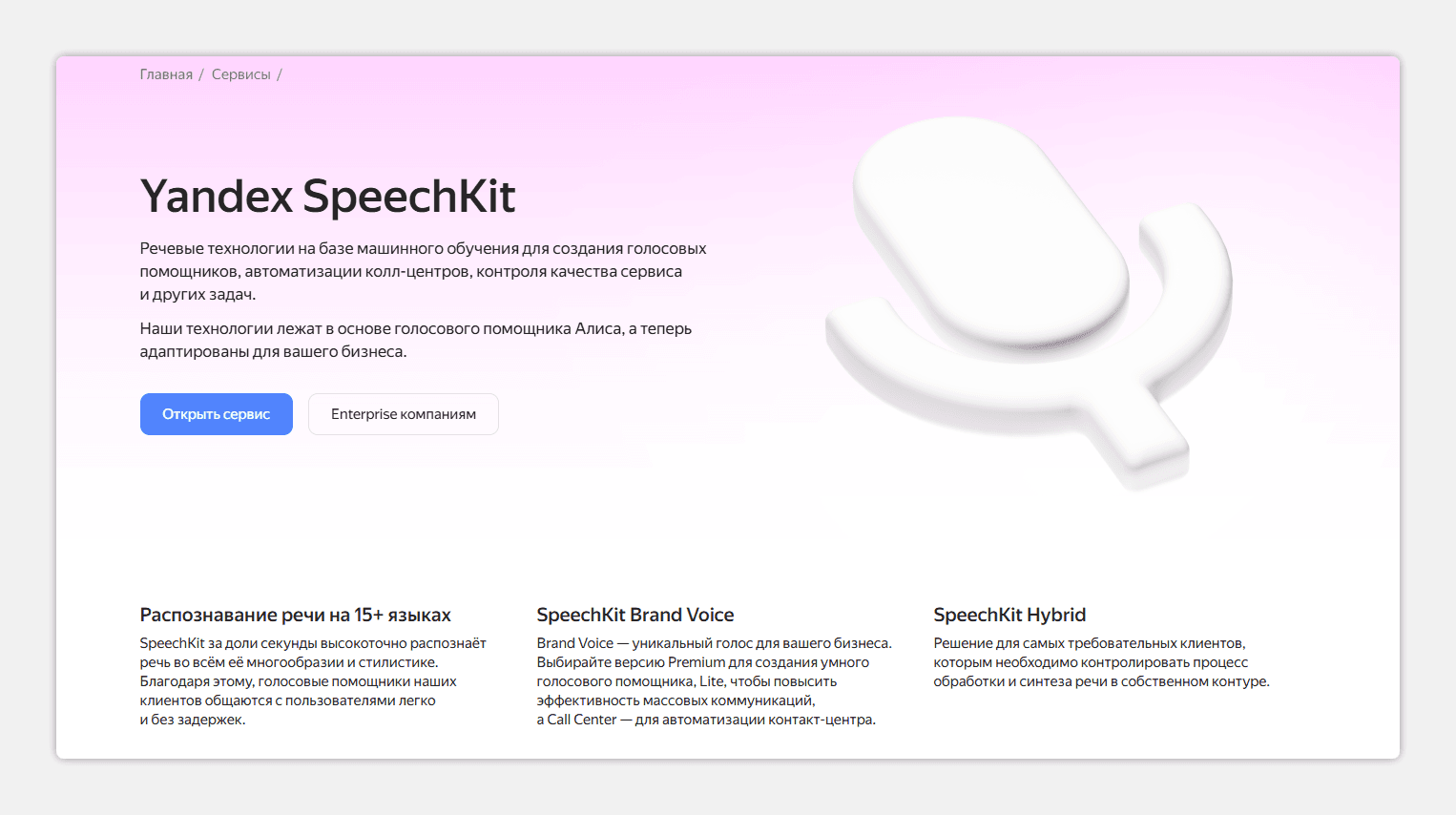 Yandex SpeechKit подходит для крупных компаний и разработчиков при преобразовании аудио в текст.