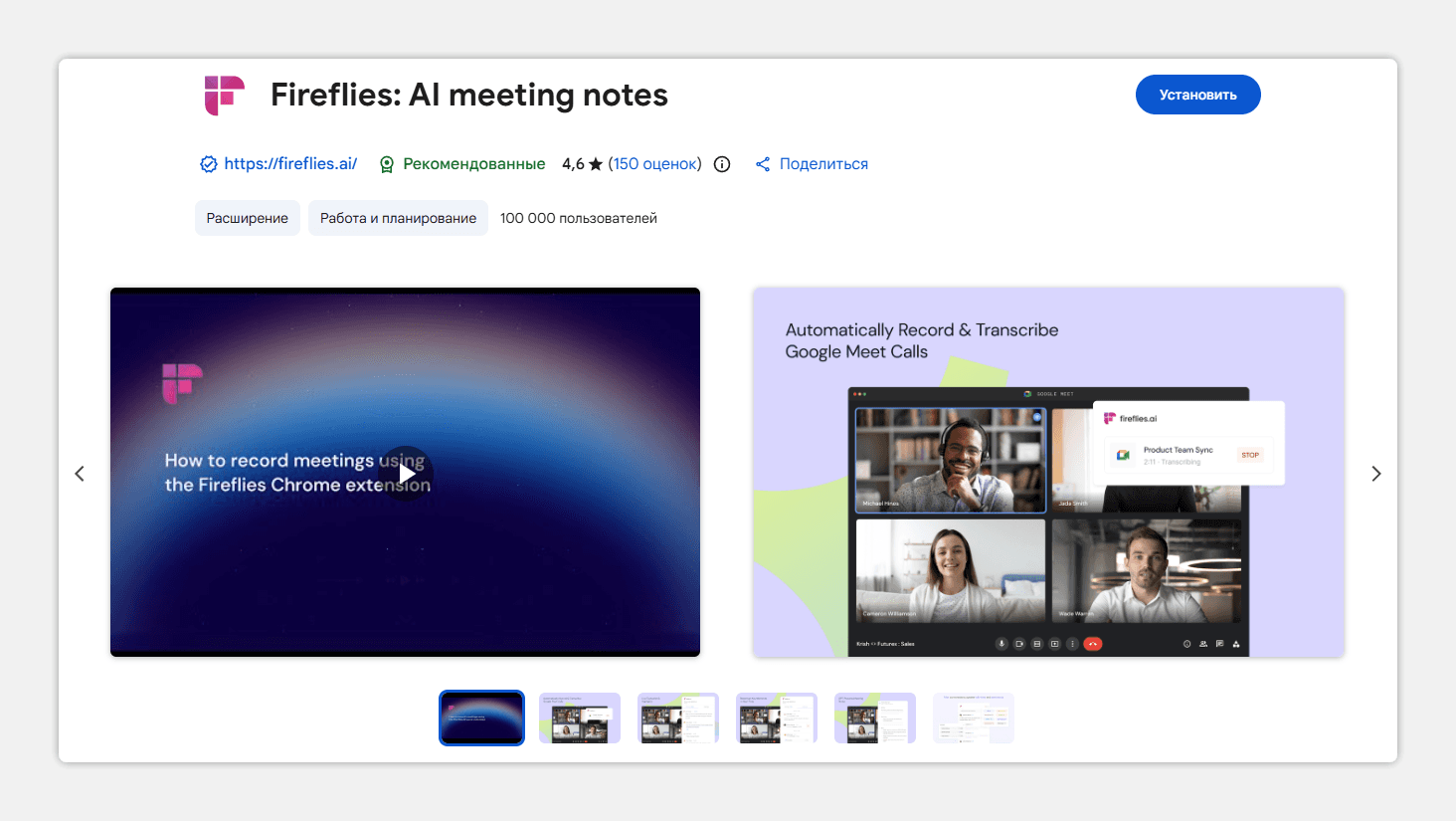 3. Fireflies.ai — расширение для автоматических заметок Google Meet