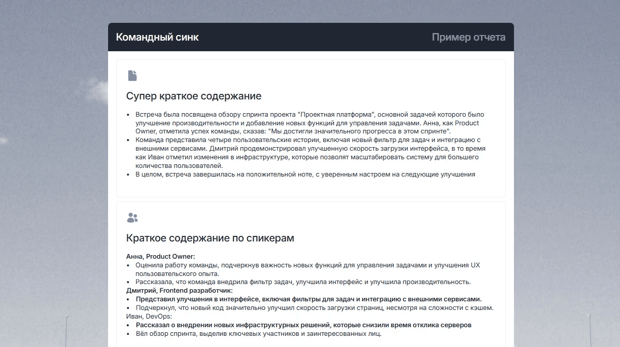 Внедрение mymeet.ai изменило процесс. После каждой встречи, где делегировал задачи, получал резюме с четкой фиксацией - кому, что, к какому сроку, с какими критериями результата. Система напоминала о точках контроля.