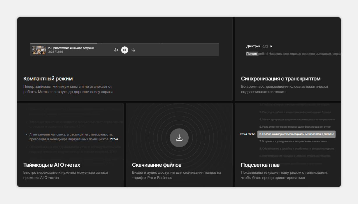mymeet.ai — лучший выбор для компаний и контент-мейкеров, которым нужен перевод видео в текст с анализом содержания.
