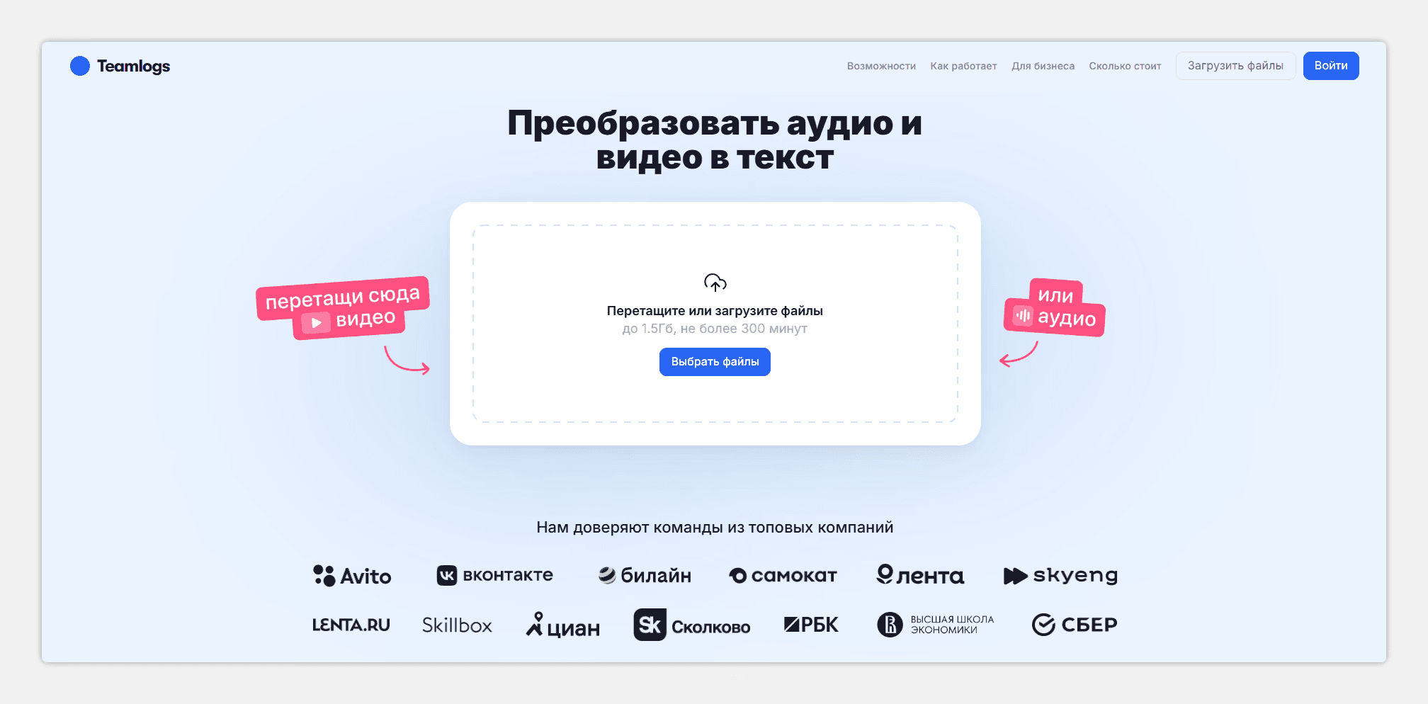 8. Teamlogs — быстрый перевод видео в текст