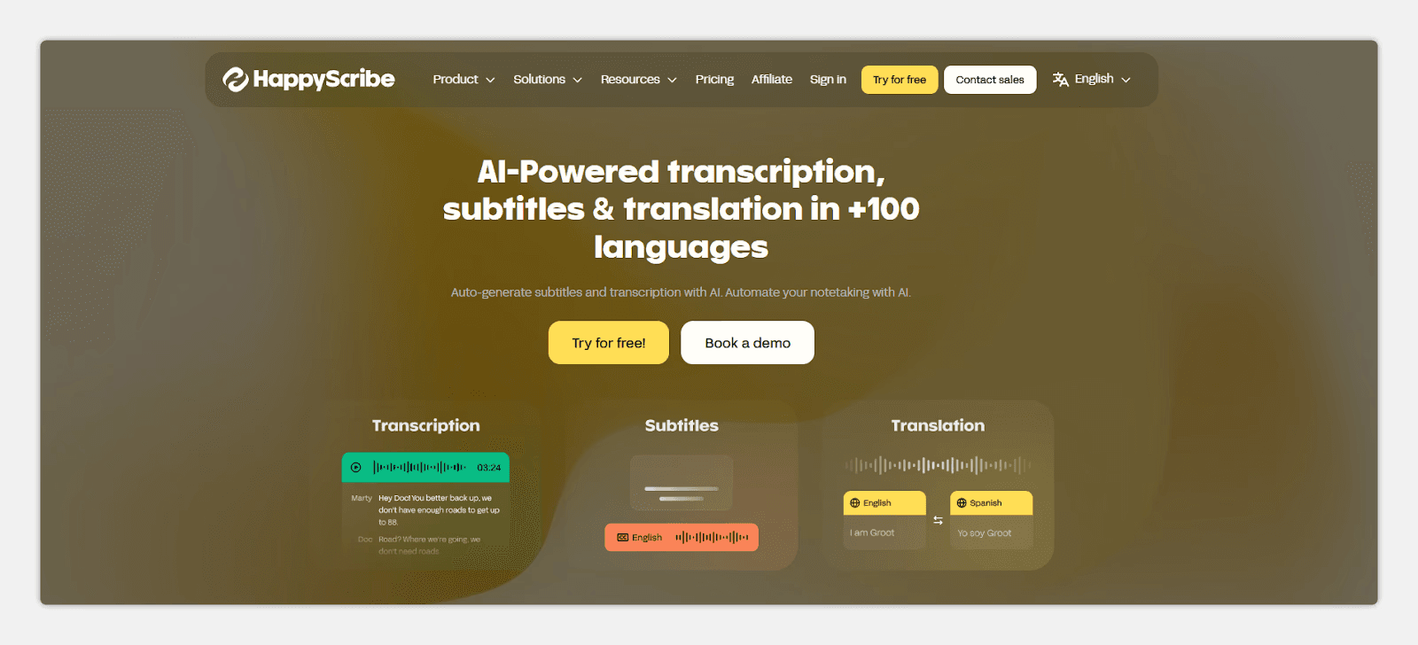 6. Happy Scribe — европейский сервис для извлечения текста из видео