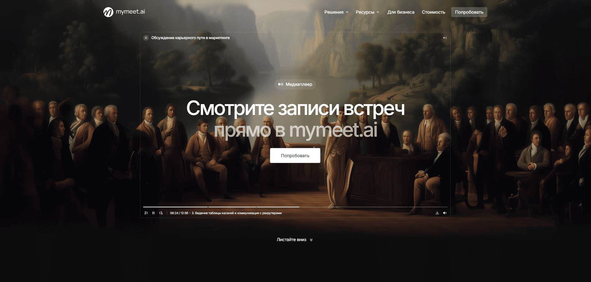 Начните с 180 минут бесплатного тестирования mymeet.ai. Хватит, чтобы обработать несколько реальных встреч вашей команды и оценить, насколько система улучшит рабочий процесс при расшифровке встреч.