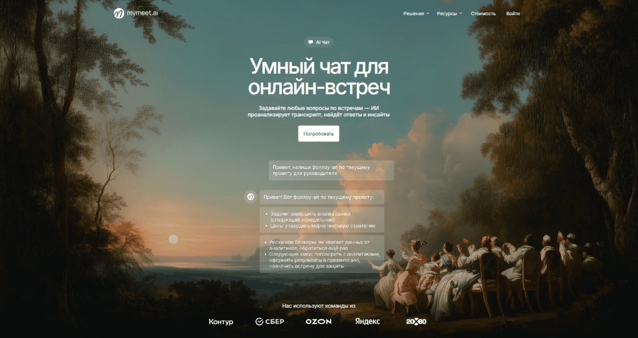 Запись и анализ деловых встреч | Специализированный для встреч | mymeet.ai |